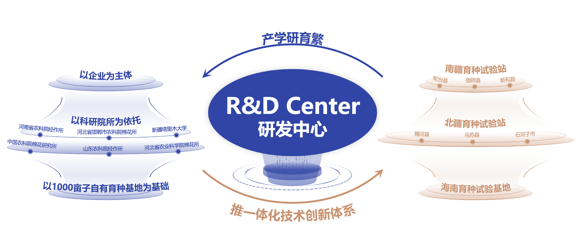 产学研一体化技术创新体系包括在全国多地设立育种实验站和生态检测点,将科研与生产紧密结合。各地的实验站和基地能够因地制宜地开展育种工作,同时为科研成果实践检验与成果转化提供基础保障。